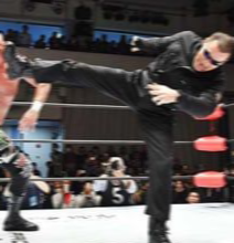 蝶野ばりのヤクザキックです。